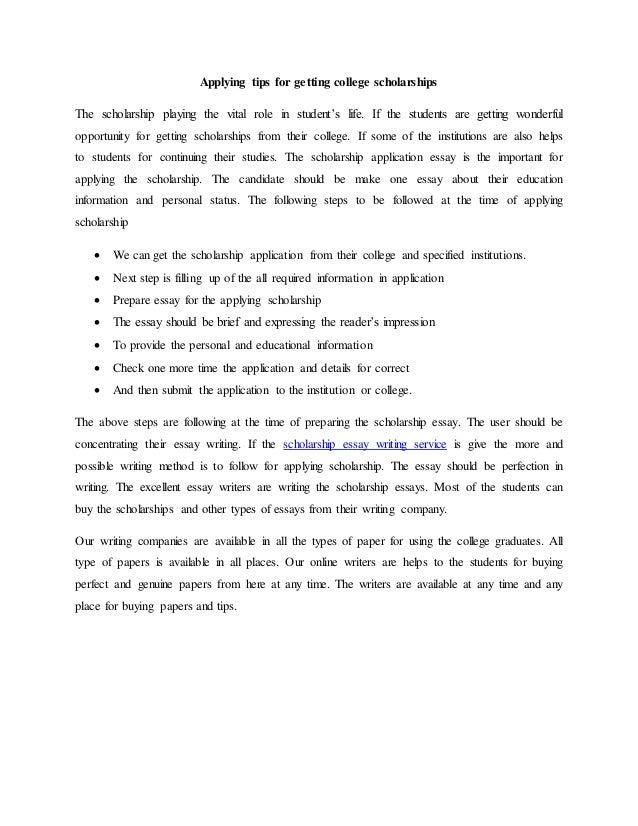 While writing your essay keep in mind what the scholarship is for and where it comes from. When you apply for a scholarship it helps to be your own cheerleader. Some of the things that you can say include being hard working a good leader a team player and persistent.
